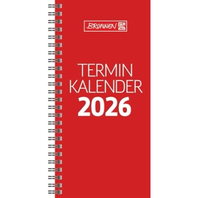 Sheet size: 100 x 207 mm 2 pages = 1 week, 120 pages, print colour calendar: black, 80 g/m², wire-o binding Glossy cardboard envelope, soft cover, flexible, colour: red, year overview current year and following year, holiday dates Germany, 5 pages worth knowing, important payment dates, tax dates, 1 page addresses For calendar year 2026