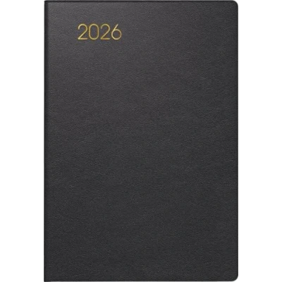 Sheet size: 76 x 112 mm 2 pages = 1 week, 160 pages, print colour calendar: black, 70 g/m², adhesive binding Leather cover, colour: black, year overview previous year, current year and following year, 6 pages monthly plan following year, monthly plan current year can be laid out, 3 parts, holiday dates Germany, 16 pages notes blank perforated, 10 pages worth knowing, 16 pages of maps Corner perforation For calendar year 2026