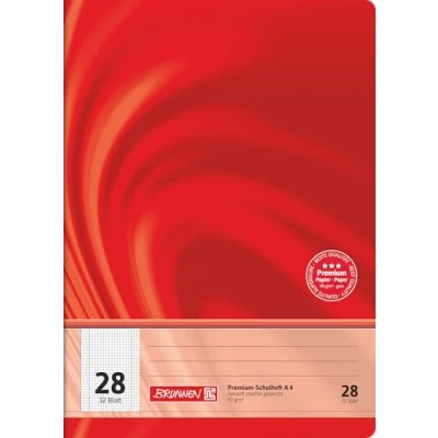 Brunnen Premium exercise books DIN A4, 32 pages (Double), 1 piece Ink resistant 90 g/m² writing paper for comfortable writing; Rounded Corners Extra Strong High Gloss envelope Line Style 28, checked, with margin line indoor and outdoor use With an environmentally stamp FSC. With large labelling area at the front; kit includes overview and class mirror on the inside