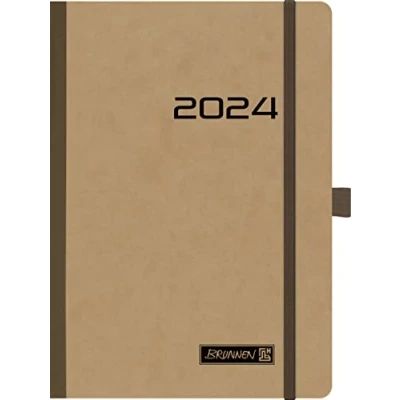 BRUNNEN Weekly calendar model 796 2024, 2 pages = 1 week, sheet size 14.8 x 20.8 cm, brown
