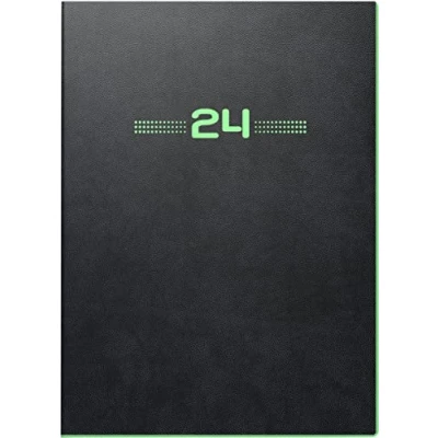 BRUNNEN Weekly calendar neon model 796 2024, 2 pages = 1 week, sheet size 14.8 x 20.8 cm, black with edge, green