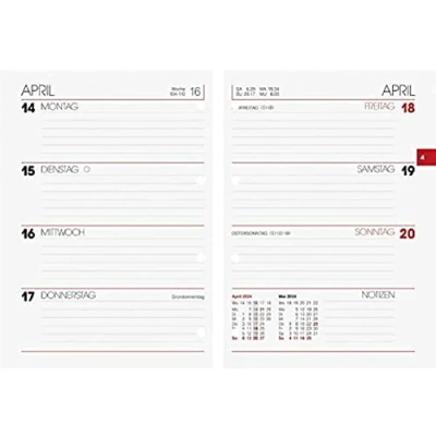 BRUNNEN Weekly replacement calendar model 731 2024, 2 pages = 1 week, sheet size 10 x 14 cm, white