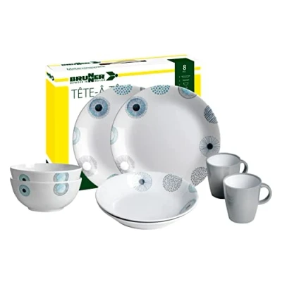 BRUNNER 0830143N.C7R Camping Tableware Set for 2 Persons, Tête À Deep Sea, 8 Pieces