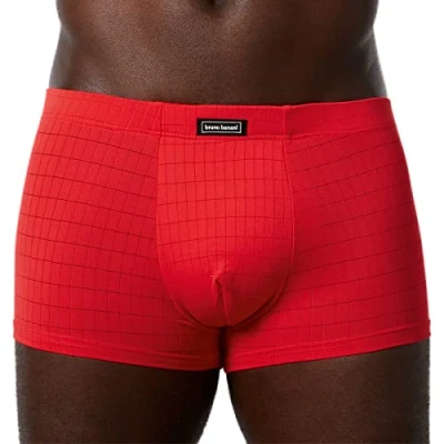 Perfect fit: the soft fitting retro shorts from the Check Line 2.0 series by bruno banani convince as underwear for men with an excellent fit that feels like a second skin All day comfort: the elastic shorts with low rise fit your body perfectly while offering maximum freedom of movement - for all-round comfort Breathable material: The hipsters are made of super soft microfibre, which is made of 90% polyamide and 10% elastane. This blend ensures a comfortable feel while providing high durability Classic colours: the hip shorts with a subtle check pattern are available in black, navy, red and white and are the perfect basic in your laundry closet ADDED VALUE FOR MEN: We want you to feel comfortable with our underwear. That's why we pay attention to a perfect combination of material, cut and workmanship during production