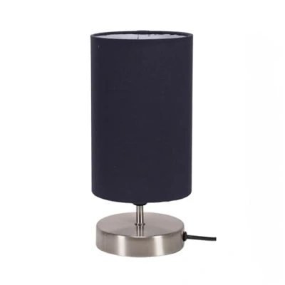 AmazonTABLE LAMPS - A dimmable touch table lamp with metal base and fabric shade. Features a 150cm cable with UK mains plug. HOME LIGHTING - A long drum fabric shade in navy on a thin, circular, brushed chrome base and stem. Understated and classic. COMES WITH A BULB - Bulb Included - 1 x 4W LED E14 light bulb is supplied with 3000K colour temperature ABOUT US - At ValueLights our commitment is as clear today as it was the day we opened our doors back in 2009, to become the go-to people for lighting - with an unbeatable range of lamps, lights, shades or bulbs.