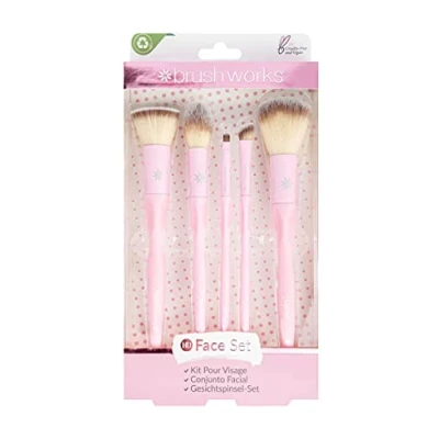 Complete Face Set of Makeup Brushes by Brushworks Created to apply, blend, highlight and contour your face Hand cut and easy grip for precision application PETA Approved - Vegan Friendly & Cruelty Free Brushworks - The Latest Tools in Beauty