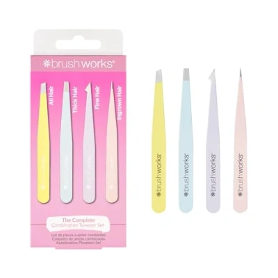 Brushworks HD 4 Piece Combination Tweezer Set White