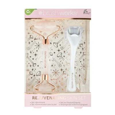 Set of Brushworks Rejuvenating Rose Quartz Roller & Derma Roller 0.5mm Transform your skin, improve elasticity and promote rejuvenation Soothe & cool your face with the roller, whilst brightening and tightening with the derma needle roller The perfect gift for a skincare lover PETA Approved - Vegan Friendly & Cruelty Free