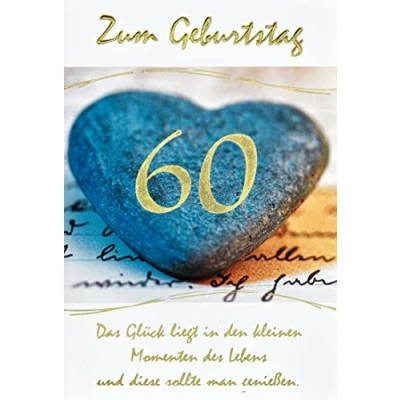 bsb 60th Birthday Card Woman & Man in 11.5 x 17.0 cm with Stone Heart Motif Envelope Cards