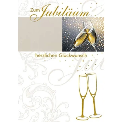 bsb Anniversary Card with Champagne Glasses Motif Loving for Service or Company Congratulations in 12.4 x 17.9 cm