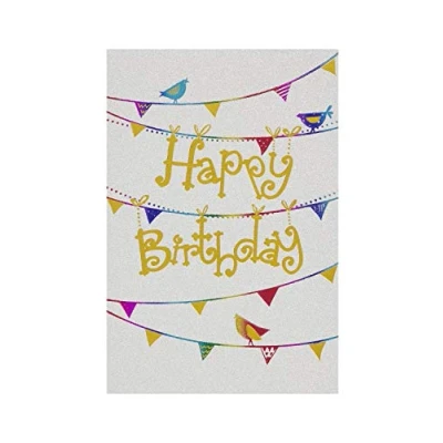 bsb Birthday Card Greetings Wishes with Glitter Happy Pennants White Envelope