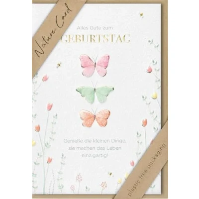 bsb Birthday Card Nature Sustainable Cards with Envelope Women & Men Greeting 11.5 x 17 cm Butterflies