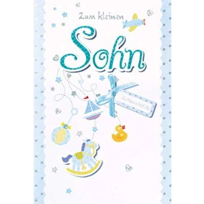 bsb Greeting Card for Birth"Zum Kleine Son" with Appliqué and Bow