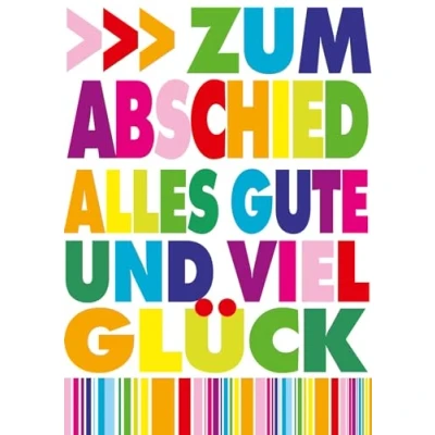 BSB Greeting card for leaving Farewell Zum lots of happiness in colourful letters, A4 format.