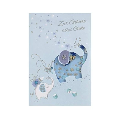 bsb Greetings Card for The Birth"Zum Birth Alles Gute" with Elephants (Blue)