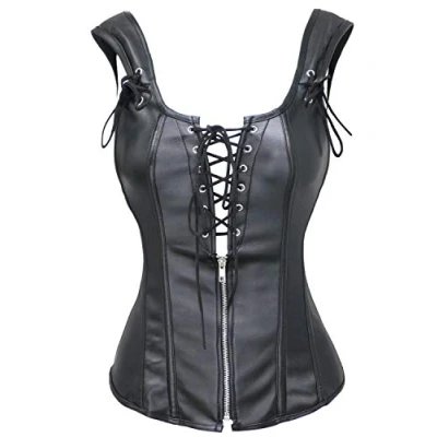 Materials: Made up of 50% PU and 50% Rayon High quality vintage medieval style corset. The front part is zipper closure while the back is lace up closure Size: S, M, L, XL, XXL (Please choose the corset according to waist size) The packages contains the corset, matching g string. Hand wash is recommended, do not use machine to wash Designed as Casual Wear or Part of Costume Outfit, Perfect for renaissance party, pirate, cosplay, festival, costume party and clubbing and any other occasions