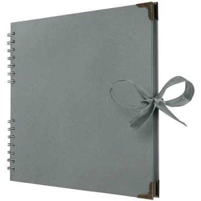 Bstorify Square Scrapbook Photo Albums 60 Pages (21 x 21 Cm) Grey Thick Paper, Hardcover, Metal Corners, Ribbon Closure Ideal for Your Scrapbooking Albums, Art & Craft Projects (Grey,