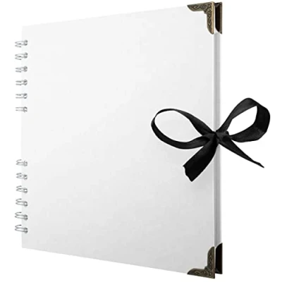 Bstorify Square Scrapbook Photo Albums 60 Pages (21 x 21 Cm) White Thick Paper, Hardcover, Metal Corners, Ribbon Closure Ideal for Your Scrapbooking Albums, Art & Craft Projects (White,