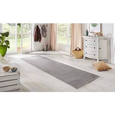 BT Carpet Nature Runner Indoor and Outdoor Loop Kitchen Non Slip Flat Weave Short Pile Wool Look Fineloop Rug for Hallway, Kitchen, Garden, Patio, Bathroom Silver Grey, 80 x 350 cm