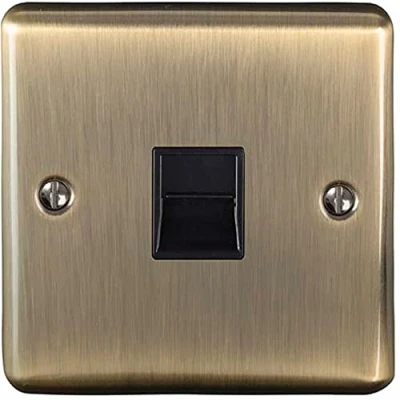 BT Telephone Slave Extension Socket ANTIQUE BRASS & Black Trim Secondary Line Wall Face Plate Flush or Surface Mounted Phone Plug 1 Gang Decorative Metal