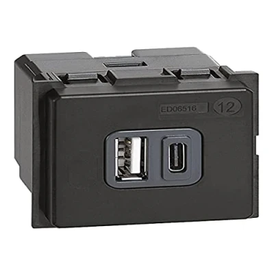 BTICINO MatixGO USB Power Plug 1 Module Grey JG4192C Charger one Type...