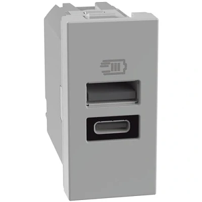 BTICINO MatixGO USB Power Plug 1 Module Grey JG4191AC Charger with one Type A Port and C, 15W