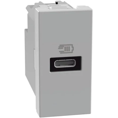 BTICINO MatixGO USB Power Plug 1 Module Grey JG4192C Charger one Type C Port, 20W