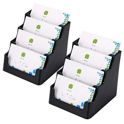 BTSKY 2 Pcs Black Acrylic Business Card Holders 4 Pocket Desktop Stands Countertop Index Organizer for Desk Tidy Office Accessories