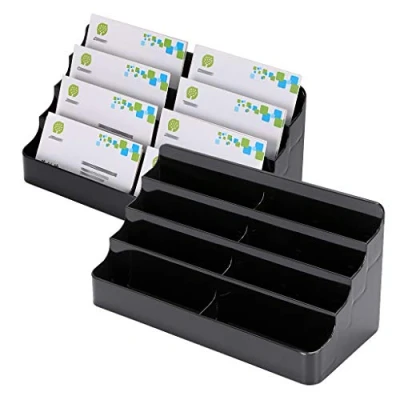 BTSKY 2 Pcs Black Acrylic Business Card Holders 8 Pocket Desktop Stands Countertop Index Organizer for Desk Tidy Office Accessories