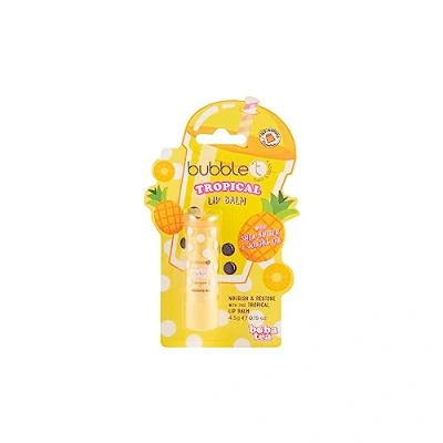 Bubble TBoba Tea Tropical Lip Balm 4.5g is a vegan-friendly, cruelty-free lip balm infused with Shea Butter, Jojoba Oil, and antioxidant-rich Matcha powder to deeply hydrate, soothe, and protect your lips, leaving them soft and nourished.