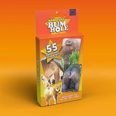 Introducing Name That Bumhole, an outrageously fun and uniquely engaging card game that takes a hilarious twist on trivia! Can you name the animal that the bumhole belongs to? It's not your typical quiz; instead, animals' anuses are showcased in flashcard format, challenging players to identify the creature and then tackle species-related trivia questions. Prepare to be amazed by how many animals you'll recognize just by taking a peek at this lesser-known aspect of their anatomy. Embrace the hilarity and laughter as you delve into a world where toilet humour reigns supreme – because if it "cracks" you up, why not let the good times roll?