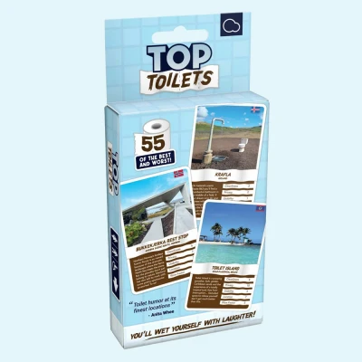 Get ready for a bathroom adventure with Top Toilets, the ultimate card game that takes you on a globe-trotting journey to explore the most outrageous and luxurious water closets around! With a comedic twist, you’ll collect toilets from your friends, all while competing to become the undisputed King of the Throne. Each card introduces you to 55 lavatories, ranging from laughably leaky to lavishly luxurious, ensuring every round is packed with giggles and surprises! This isn’t just any family game; it’s a laughter-filled competition for those who know how to have a good time! Engage in playful battles and outscore your opponents by assessing each toilet’s cleanliness, usability, and other quirky attributes. With easy-to-understand mechanics, it's ideal for game nights, creating unforgettable memories while you chuckle over the world’s wildest toilets! Top Toilets promises endless fun, captivating everyone from humour enthusiasts to game lovers. Whether you’re sorting through the silly rankings or boasting about your bathroom empire, this game is bound to be the highlight of your family gatherings. Get ready to unleash your wit and outsmart your rivals – the throne awaits!