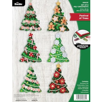 BEAUTIFUL ORNAMENTS – These felt applique ornaments is the perfect addition to your tree for the holiday season. These ornaments approximately measure 4” x 4.5”. FESTIVE DESIGN – This kit features 6 beautifully decorated Christmas trees – perfect for getting into the holiday season! COMPREHENSIVE KIT – This embroidery kit includes the basic materials needed to create ornaments including pre-stamped felt, cotton embroidery floss, separated sequins and beads, 2 embroidery needles, and easy to follow instructions. DECORATE – Enhance your home décor by adding these holiday ornaments to your Christmas tree. CLASSIC BRAND – For over 150 years, Bucilla has helped people all over the world capture the satisfying feeling of creating a hand-stitched heirloom that can be cherished for years to come., Manufacturer: Plaid Enterprises, Inc.