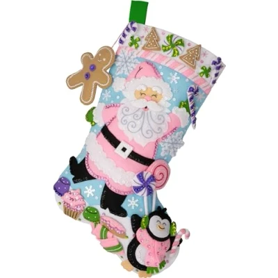 Bucilla, Lollipop Santa, Felt Applique 18" Stocking Making Kit, Perfect for Holiday DIY Arts and Crafts, 89705E