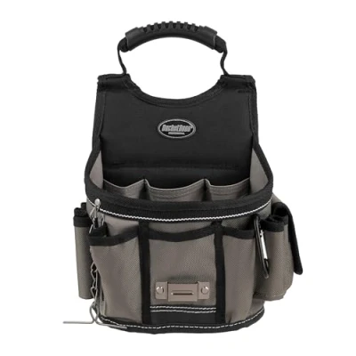 2-inch adjustable web belt with monster grommets Fits waists up to 52" 3-way carrying system (Belt, Handle or Shoulder) Metal tape measure clip T-Chain electric tape holder, Weight: 1.6 pounds, Manufacturer: Bucket Boss