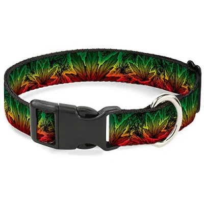 Buckle Down 6 9" Marijuana Haze Rasta Plastic Clip Collar, Narrow Small