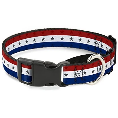 Buckle Down Americana Star Stripes Red/White/Blue Martingale Dog Collar, 1" Wide Fits 15 26" Neck Large