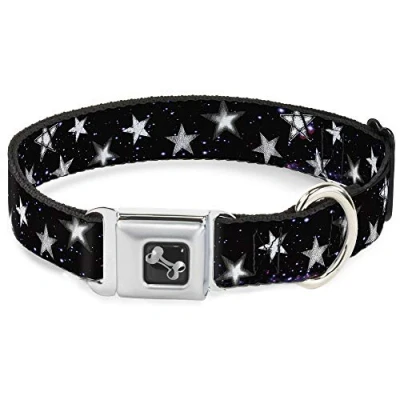 Buckle Down Dog Collar Seatbelt Glowing Stars in Space Black Purple White, Multi Color, 1" Wide Fits 9 15" Neck Small (DC W30760 S)