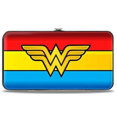 Buckle Down Hinge Wallet Wonder Woman Logo/Stripe Red/Yellows/Blue, Multicolor