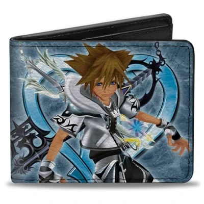 Buckle Down Men's Kingdom Hearts Ii Final Form Sora Pose/Logo/Keyblades Blues Bi Fold Wallet, Multicolor, Default Size