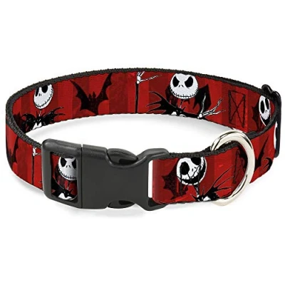 Buckle Down Nbc Jack Poses/Bats Red Stripe Plastic Clip Collar, Large/15 26