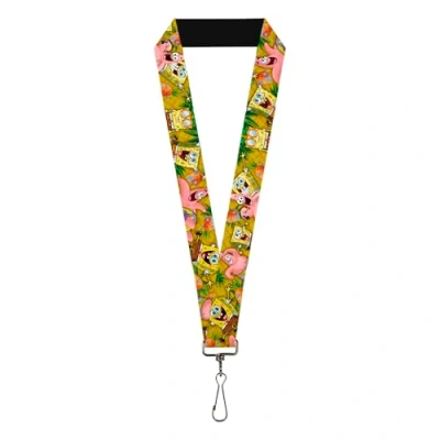 Buckle Down Nickelodeon Lanyard, SpongeBob and Patrick Starfish Poses Pineapple Gold, Elastic, Yellow, 22" x 1"