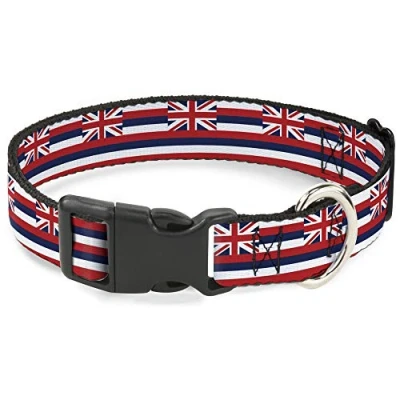 Buckle Down Pet Collar, Dog Collar Plastic Buckle, Hawaii Flag Continuous Repeat, 9.5 to 13 Inches 1.0 Inch Wide