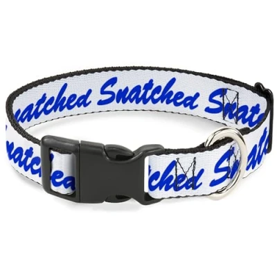 Buckle Down Pet Collar, Dog Collar Plastic Buckle, Snatched Script White Blue, 13 to 17 Inches 1.5 Inch Wide