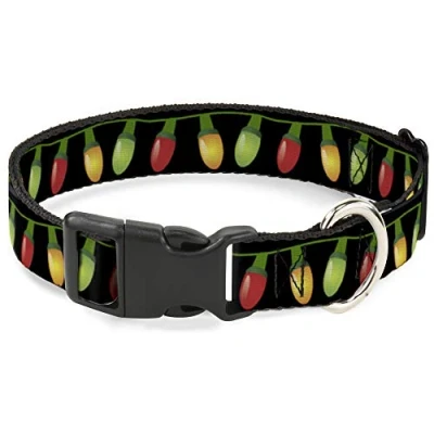 Buckle Down Plastic Clip Collar Christmas Lights Black/Multi Color 1.5" Wide Fits 16 23" Neck Medium