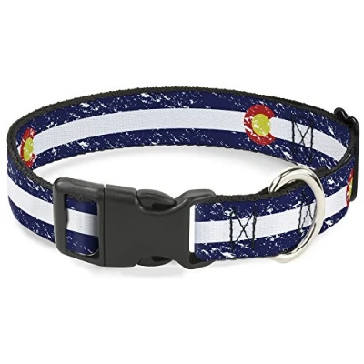 Buckle-Down Plastic Clip Collar - Colorado Flags4 Weathered - 1/2" Wide - Fits 6-9" Neck - Small
