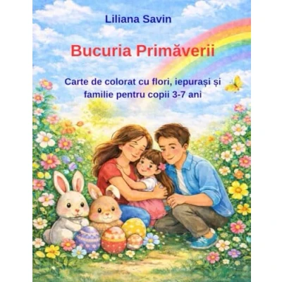 Bucuria Primăverii: Carte de colorat cu flori, iepurași și familie pentru copii 3 7 ani