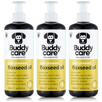 Buddycare Flaxseed Oil 500ml x3 Natural Supplement for Dogs & Cats Rich in Omega 3 Fatty Acids a Healthy Coat and Skin