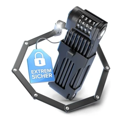 BÜCHEL Sekura Folding Bicycle Lock Secure Theft Protection Hardened Steel 85 cm Length Includes Bracket for Bike, E Bike & Motorcycle (BASIC 100 Number Code)
