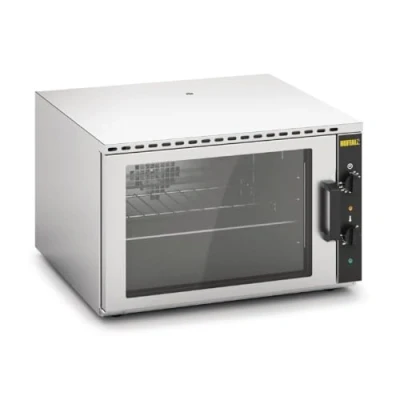 GENEROUS CAPACITY: Accepts up to four 2/3 GN trays, allowing you to cook large batches or multiple dishes at once, boosting your kitchen's output PLUG & PLAY OPERATION: Simply plug into a standard 13A socket to get started instantly. No need for costly or time-consuming hardwired installation FAST & EVEN COOKING: Fan-assisted for rapid heat-up and consistent heat distribution, ensuring your food is cooked thoroughly and evenly every time SIMPLE & PRECISE CONTROL: User-friendly manual dial controls and a 120-minute timer give you exact command over temperature and cooking duration EASY TO CLEAN & MAINTAIN: Built with durable stainless steel and features removable shelves and racks for simple cleaning and upkeep in a busy kitchen